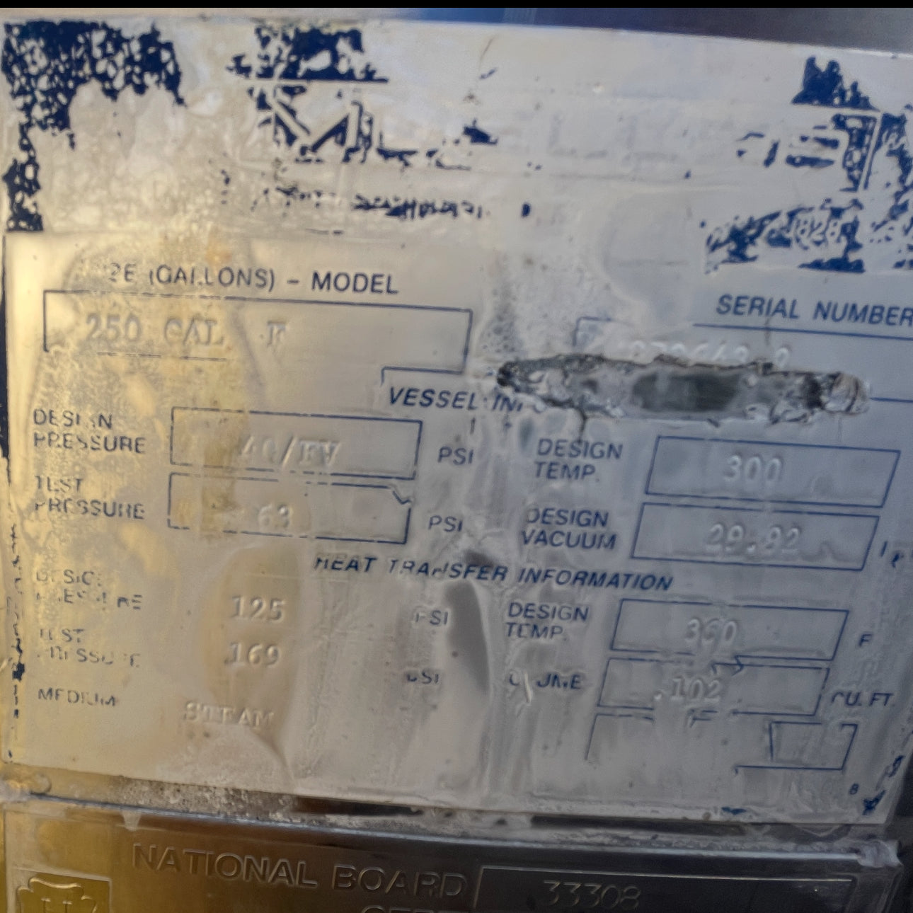 ASME stamped for up to 125psi, designed for 40psi full vacuum