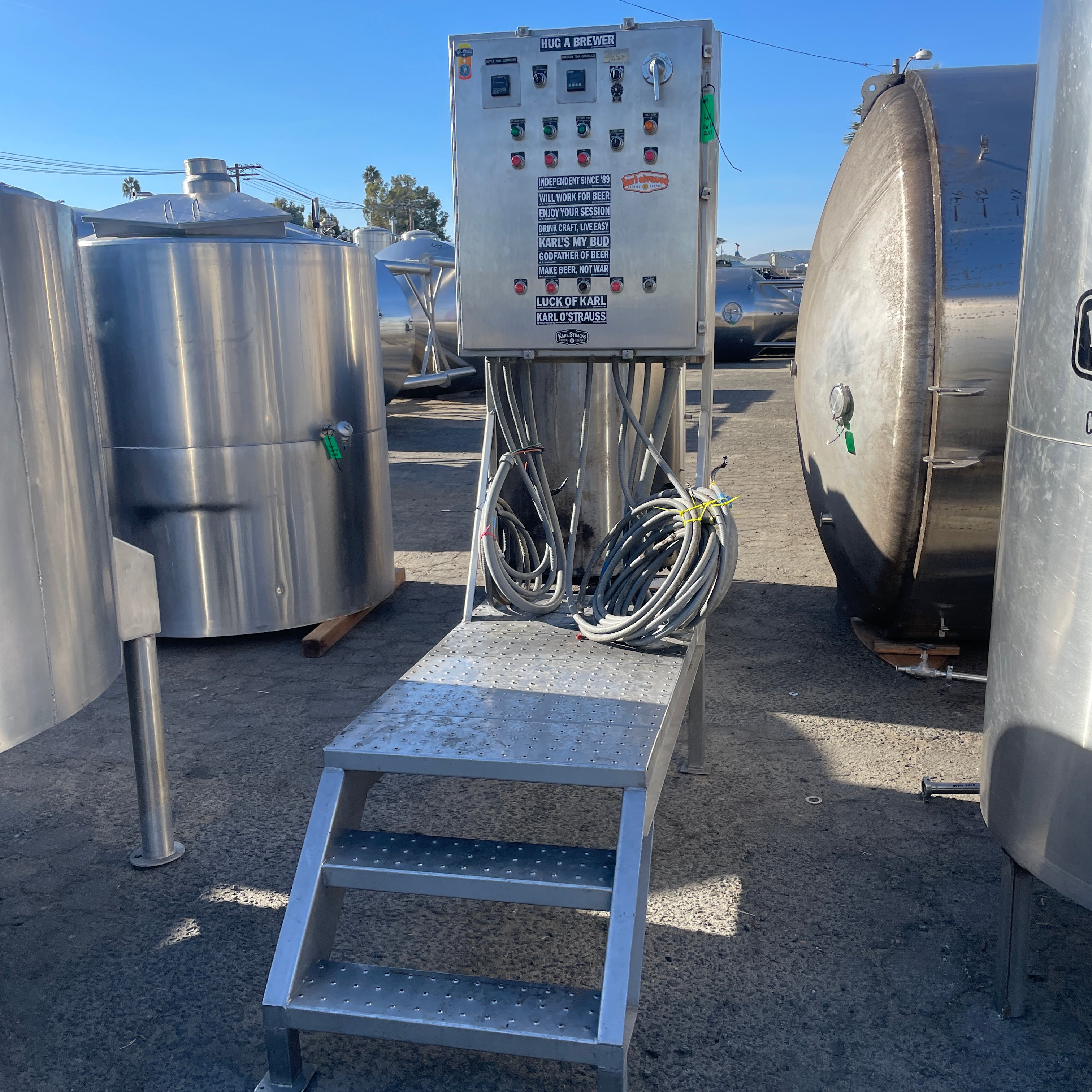 Platform with controls, insulated whirlpool with float switch, and wort grant 32” W x 75” L x 94” H