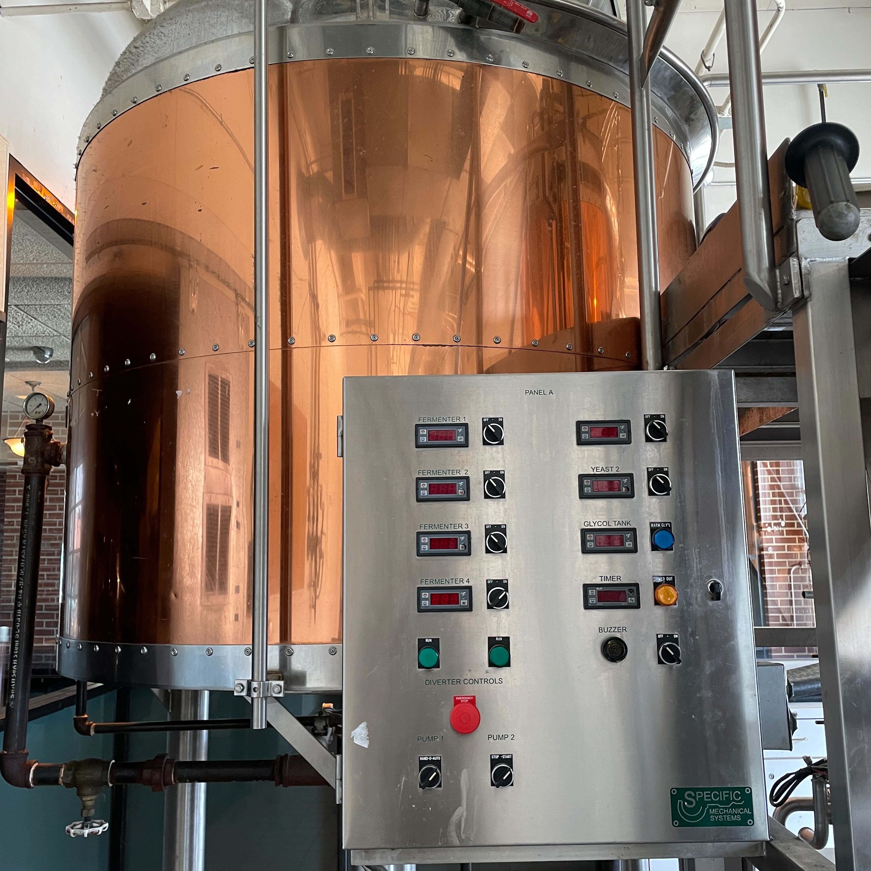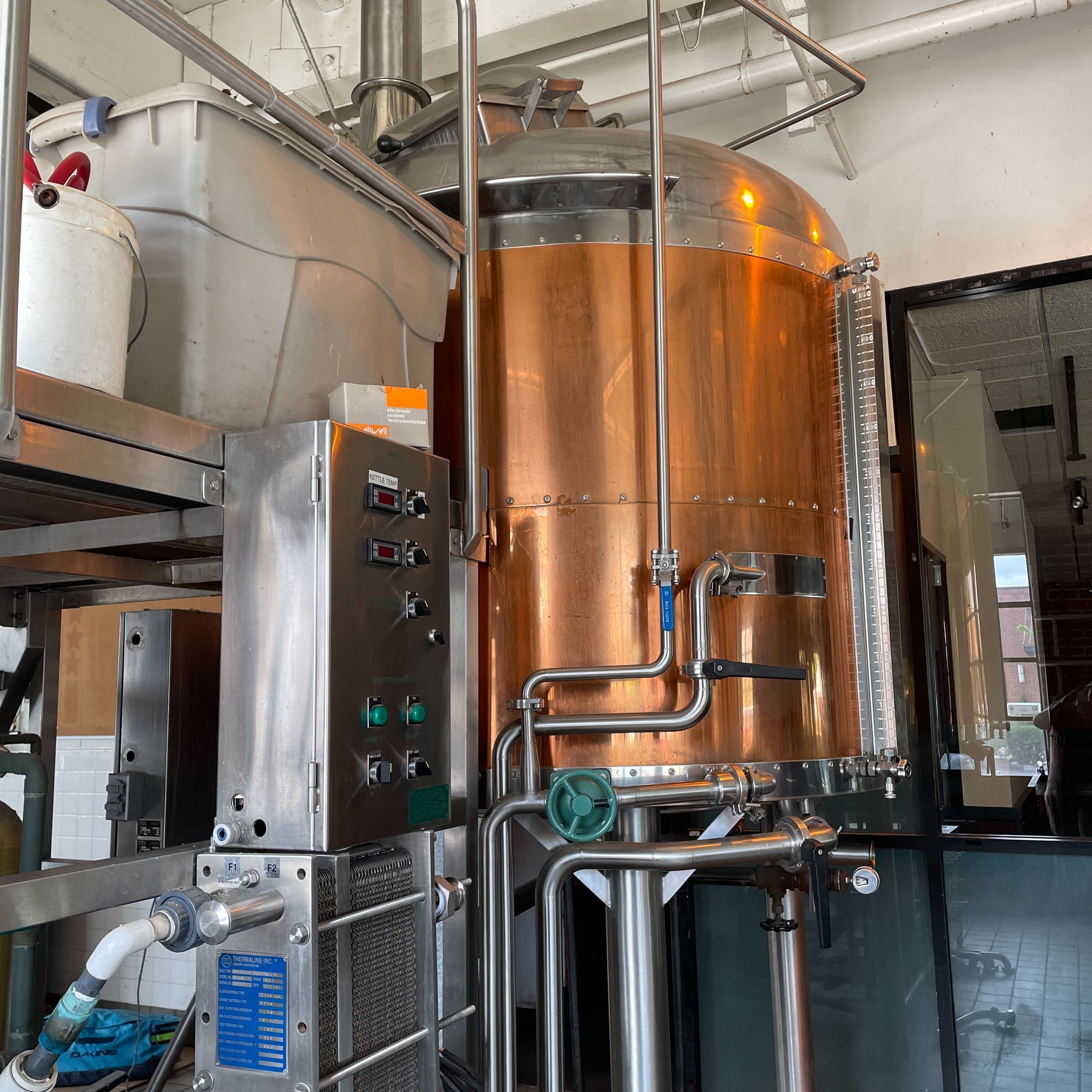 Copper clad design, over-sized kettle maxes out around 18 bbl