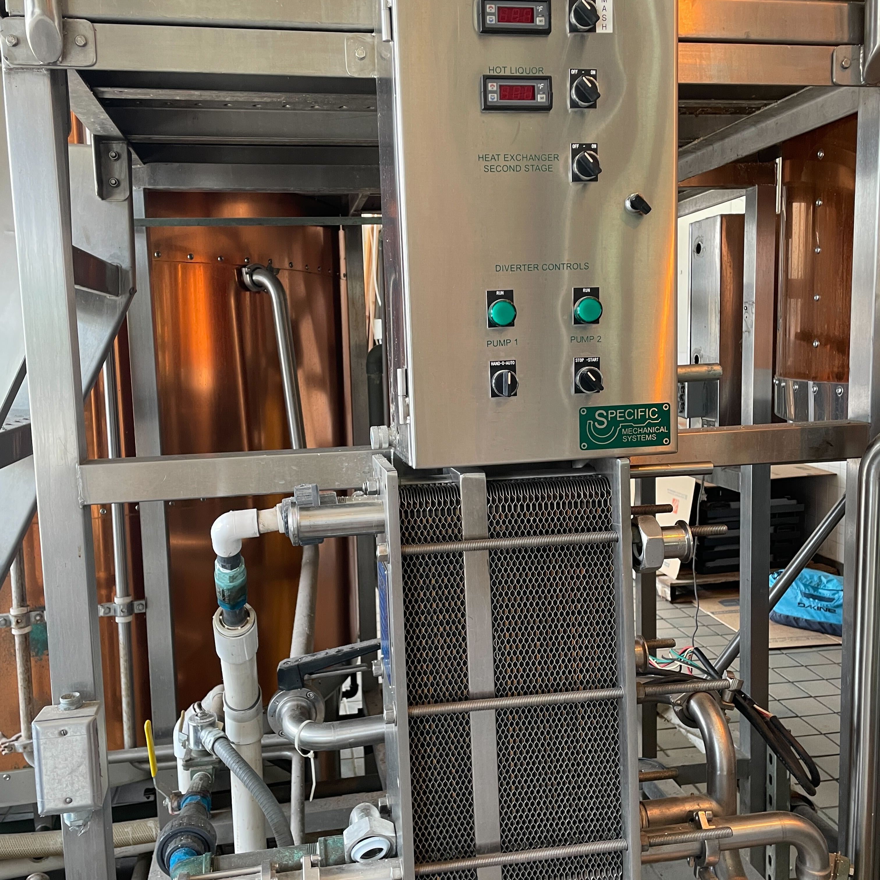 Includes platform, heat exchanger, 2x process pumps, valve center, process piping, and grist hydrator