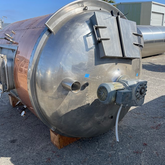 650 gallon steam fired kettle with bottom jacket, whirlpool tangential, and condensation trap