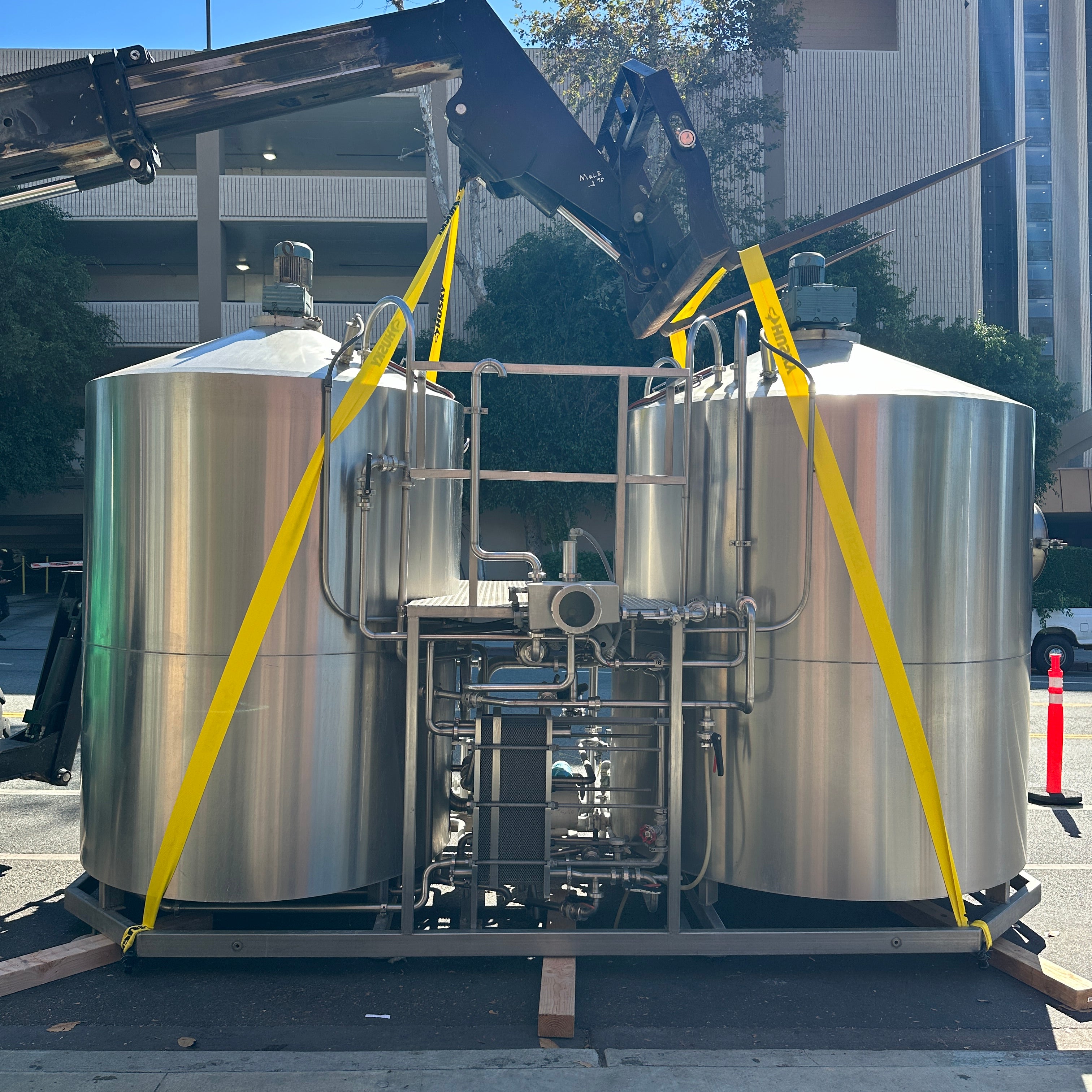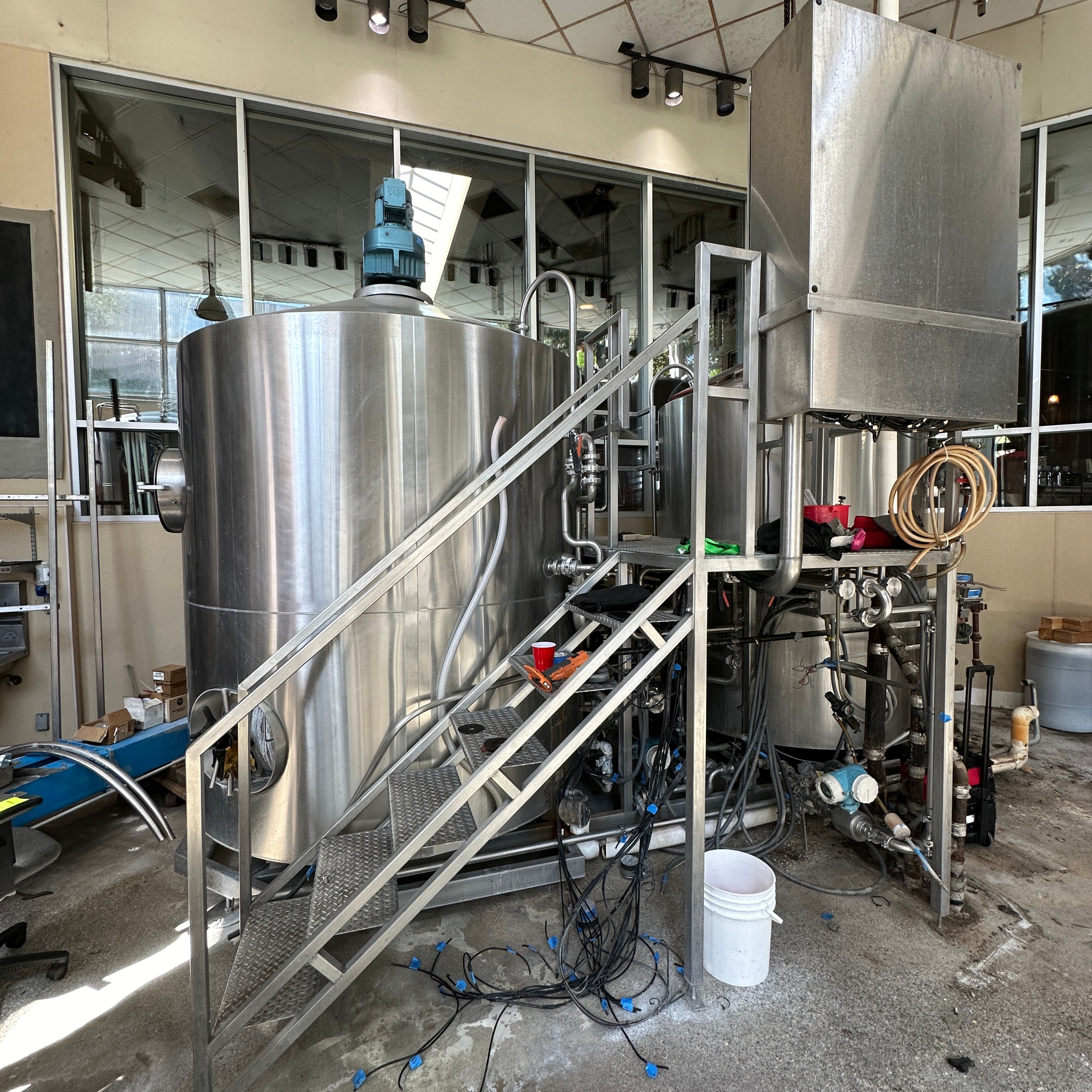 Steam jacketed HLT/Mash Tun combo with motorized rakes