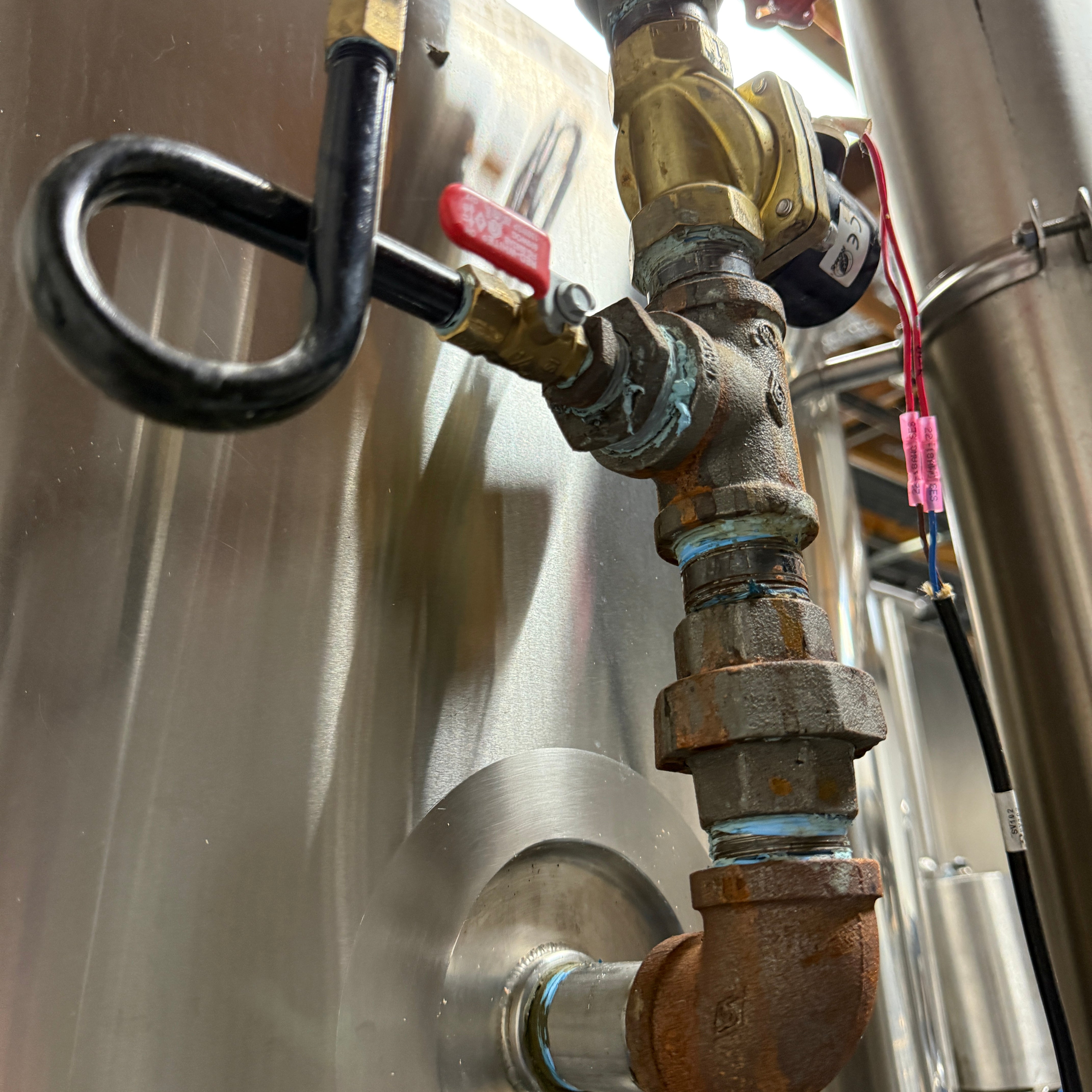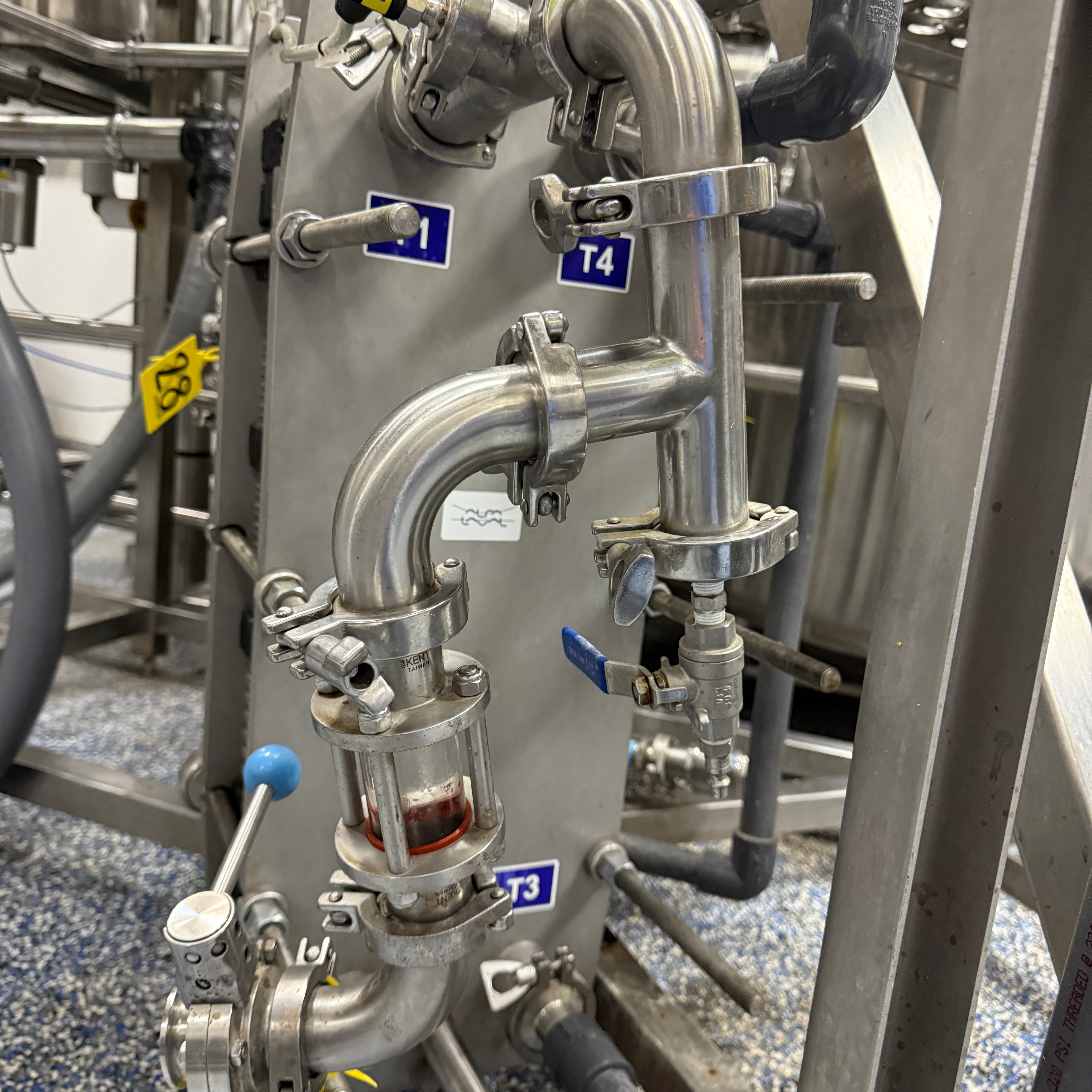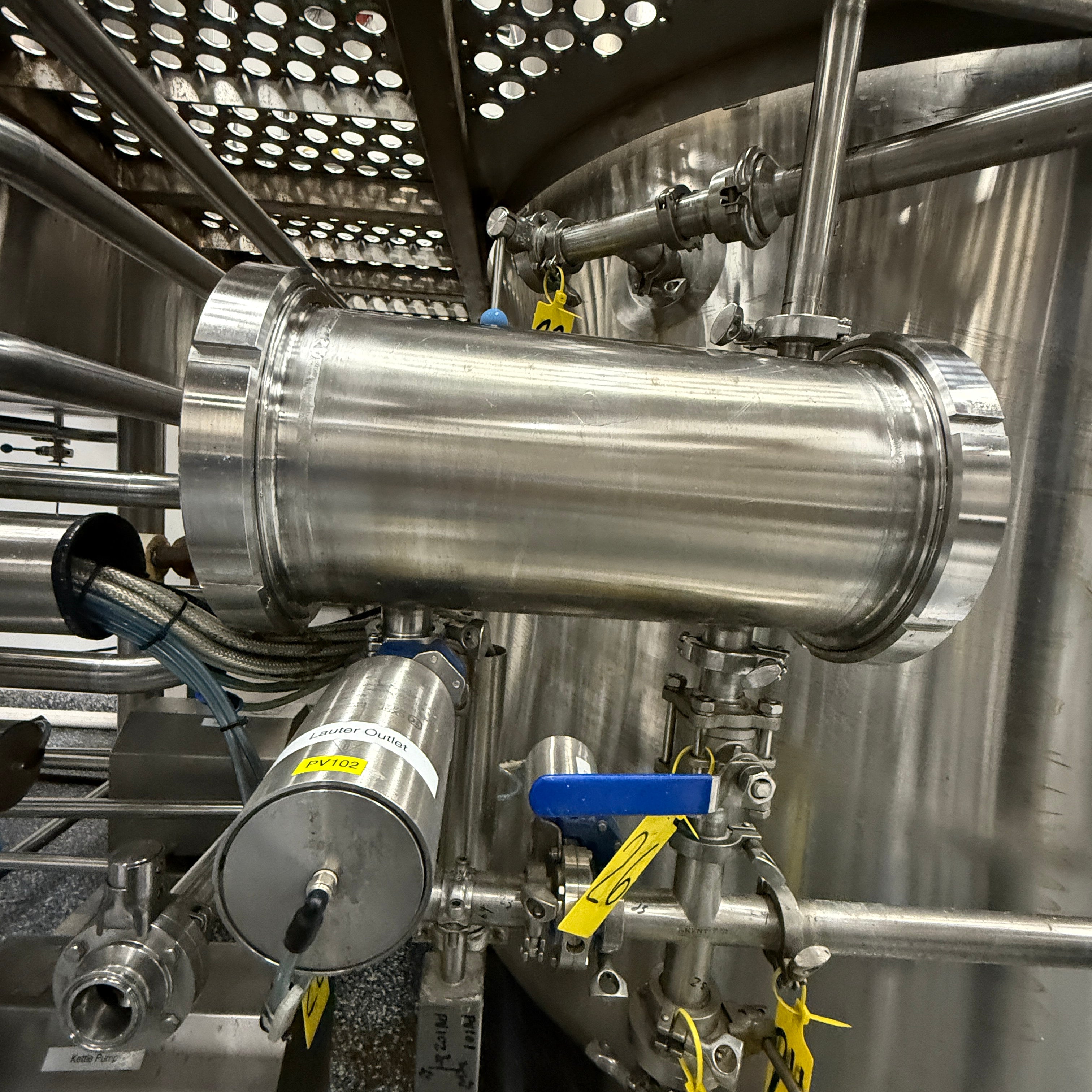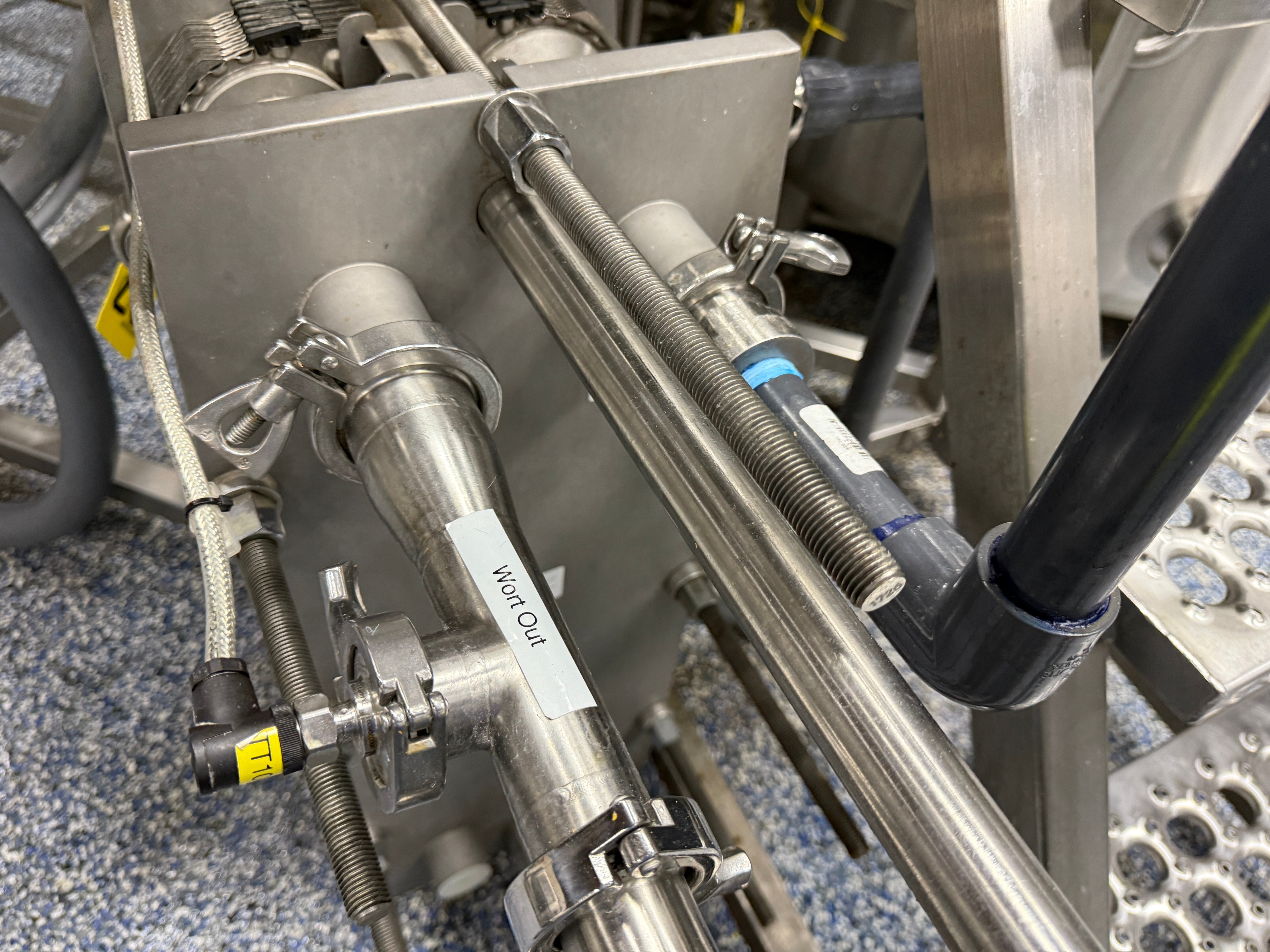 Alfa-Laval heat exchanger, flow meter, wort grant, and grist hydrator