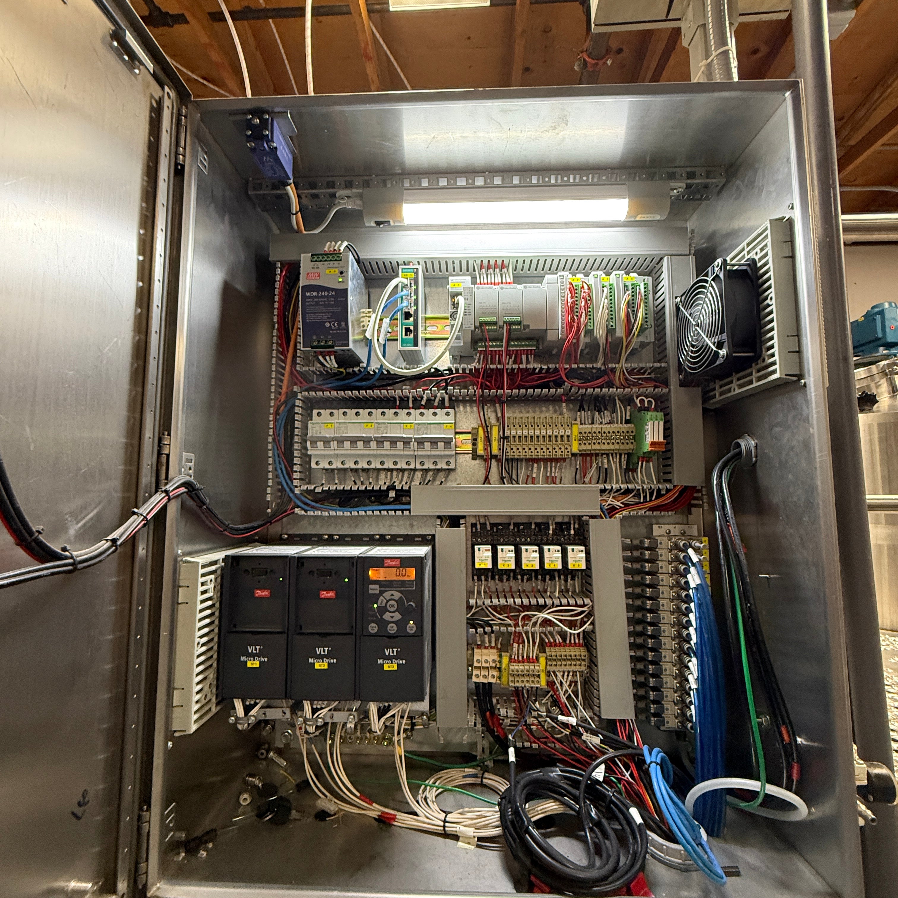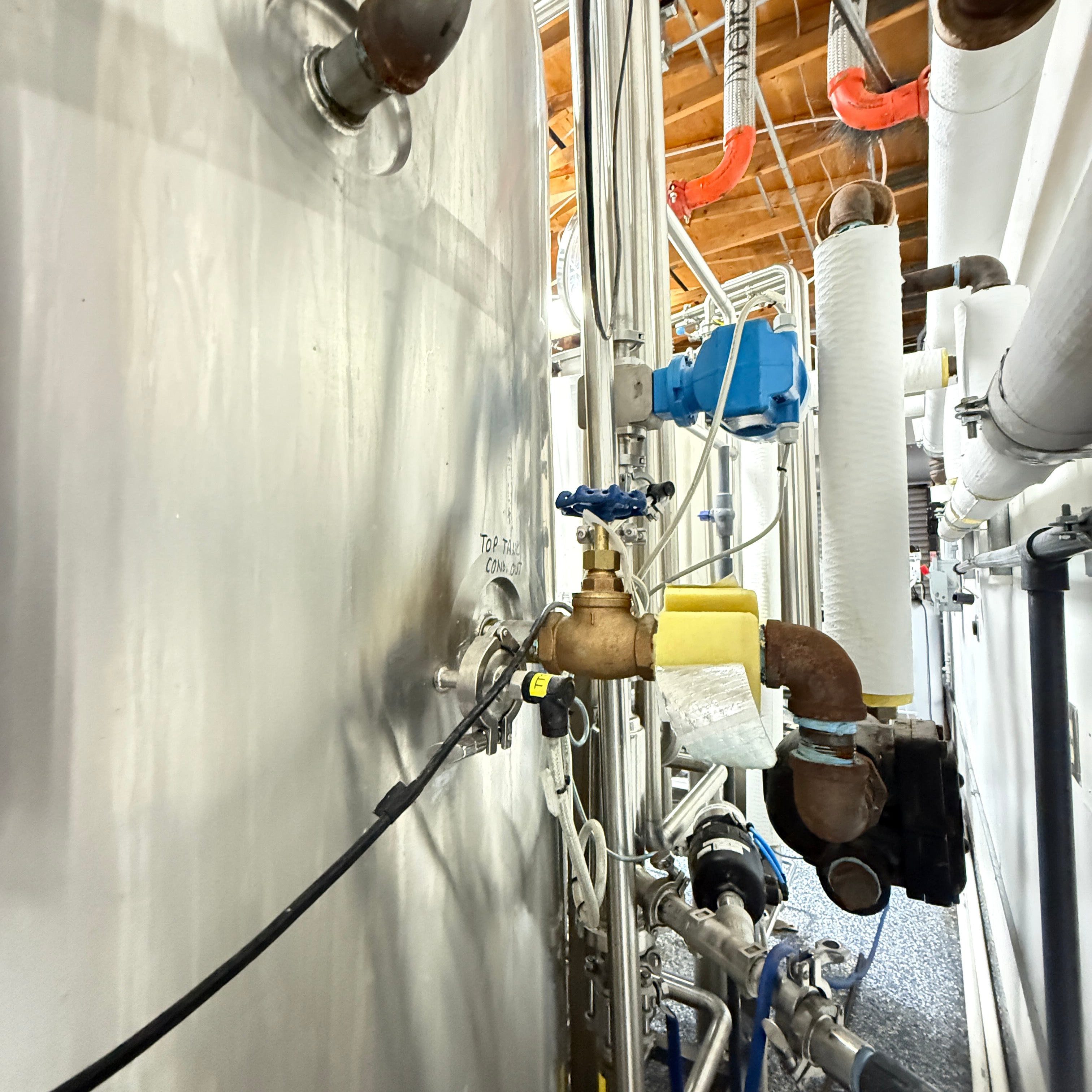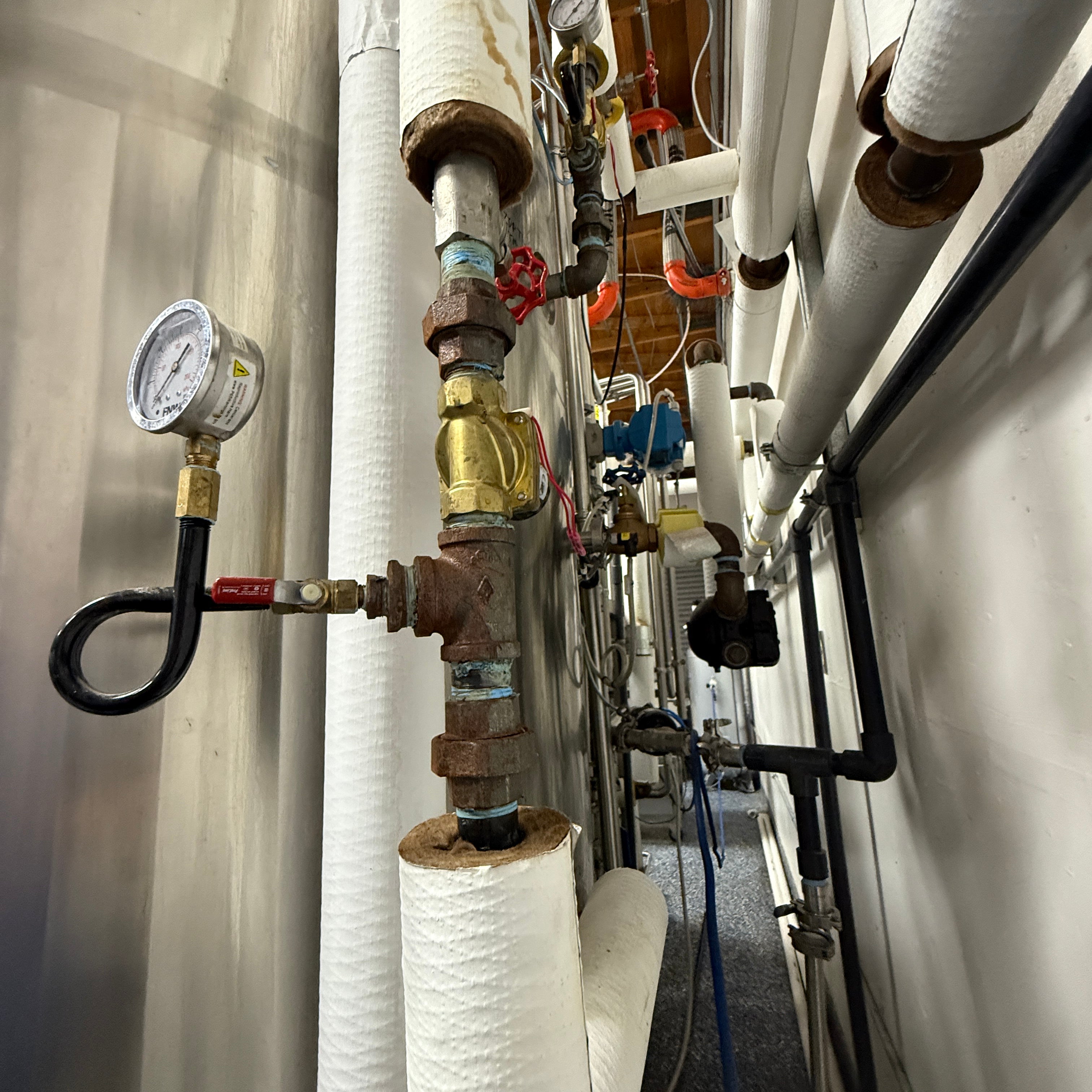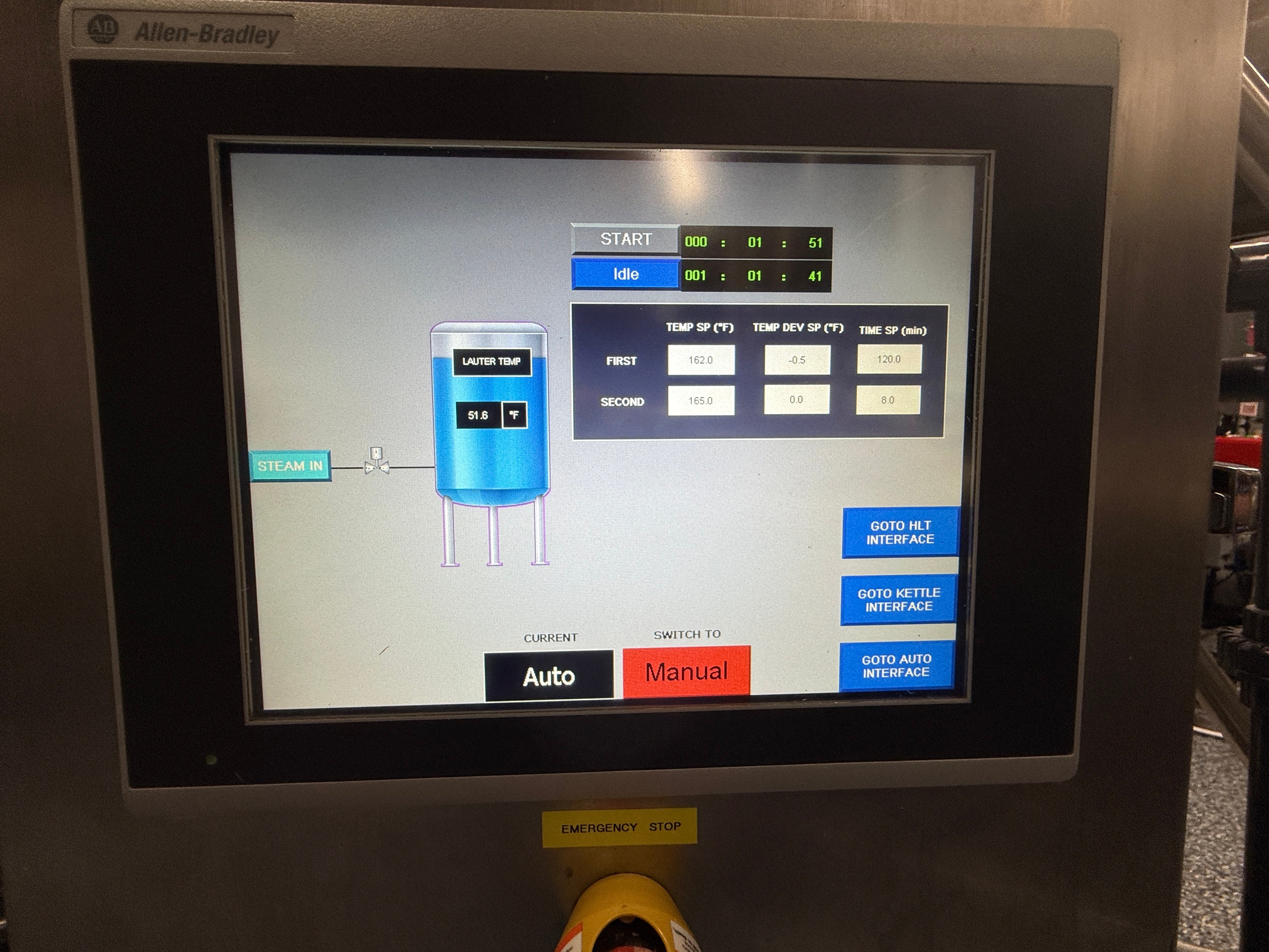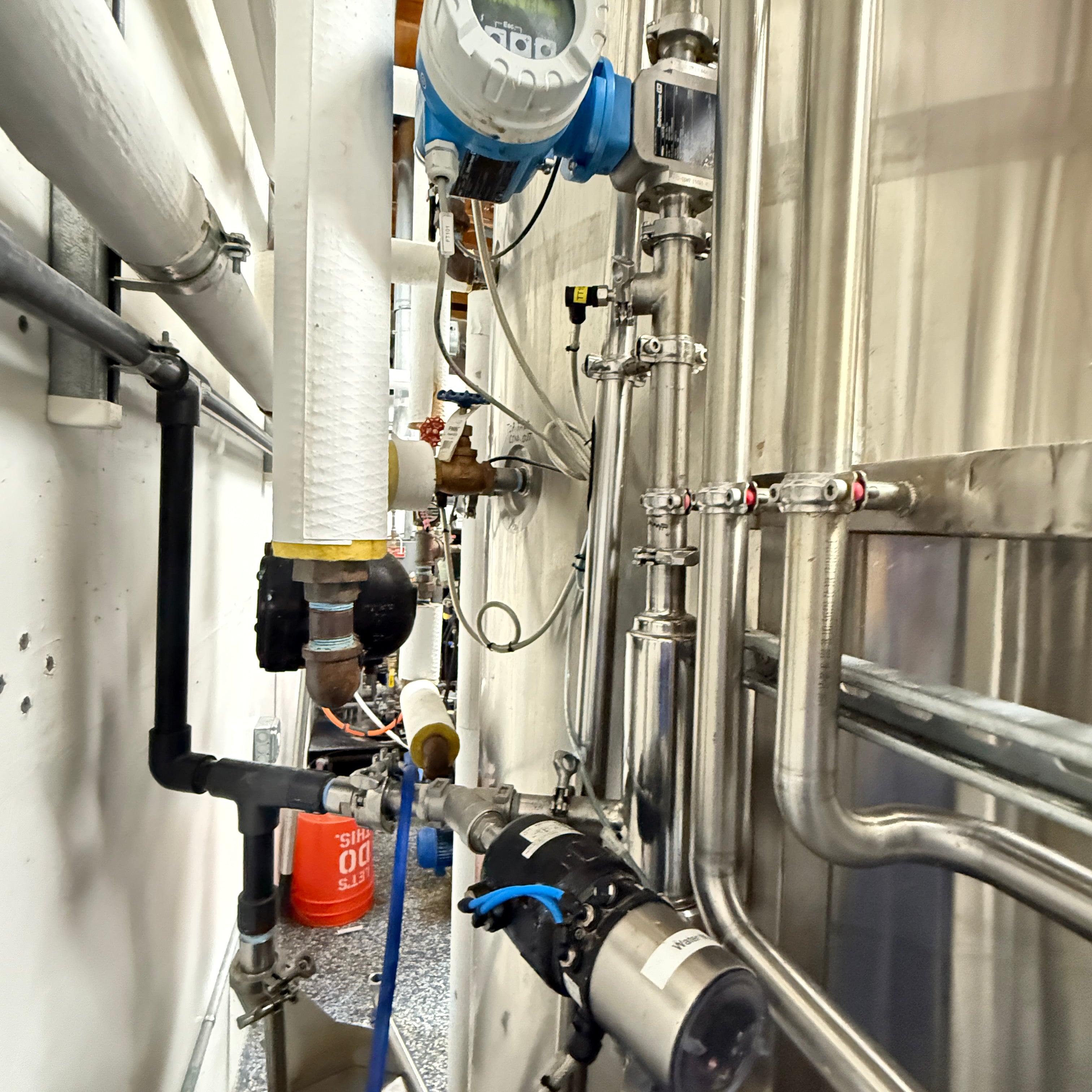 Alfa-Laval heat exchanger, flow meter, wort grant, and grist hydrator
