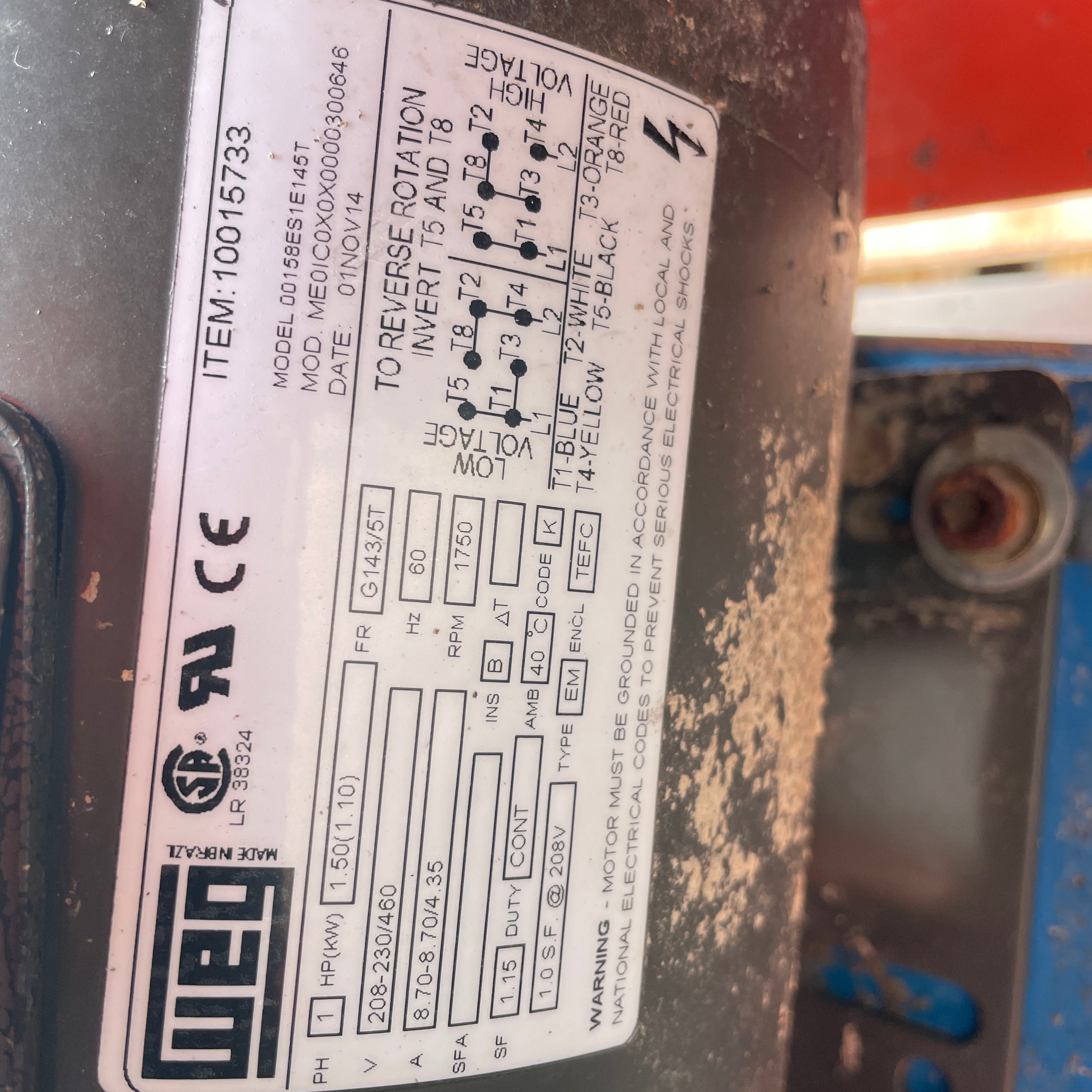 1.5hp, 208v, single phase motor